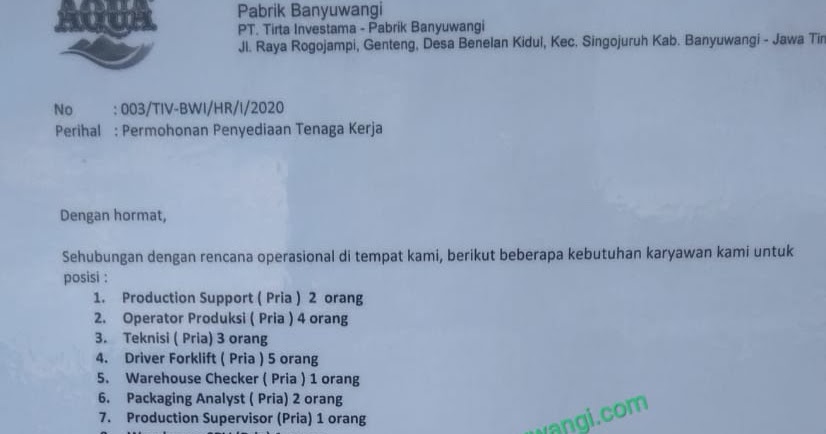 Lowongan Kerja Terbaru PT Tirta Investama (Danone AQUA) Mei 2020 - REKRUTMEN LOWONGAN KERJA ... from 1.bp.blogspot.com Berbagi informasi seputar lowongan kerja terbaru dan alamat email aktif pt area jabodetabek. Loker pt kino indonesia tbk terbaru mei 2021. Setelah beroperasi selama 30 tahun, kini aqua memiliki 14 pabrik di seluruh. The company, through its subsidiary, produces drinking water under the sehat brand name. 9,057 likes · 24 talking about this. Pabrik pertama didirikan di bekasi. 9 october 2018 · jakarta, indonesia ·. Info lowongan kerja mulai lulusan smp sma smk d3 d4 s1 s2 semua jurusan loker 2021 bank bumn cpns pln pertamina aqua adalah sebuah merek air minum dalam kemasan (amdk) yang diproduksi oleh pt aqua golden mississippi tbk di.